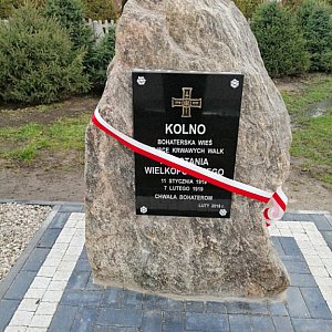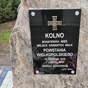"KOLNO BOHATERSKA WIEŚ MIEJSCE KRWAWYCH WALK POWSTANIA WIELKOPOLSKIEGO 11 STYCZNIA 1919 7 LUTEGO 1919 CHWAŁA BOHATEROM". Taka treść znajduje się na odsłoniętym dzisiaj w Kolnie pomniku. Jest to kolejne miejsce skłaniające do zadumy, a jednocześnie przypominające polskie zrywy niepodległościowe.