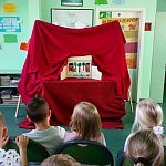 W czwartek 4 kwietnia Liceum Ogólnokształcące odwiedziły dzieci z Przedszkola nr 3 im. Jana Brzechwy.Pod opieką p. Danuty Krawczyk przedszkolaki zwiedziły szkołę, obserwowały i wykonały proste doświadczenia chemiczne, a w bibliotece szkolnej obejrzały teatrzyk ilustracji Kamishibai pt. O założeniu Poznania w wykonaniu Astrid Fojeckiej i Anny Cydejko. Na koniec każdy młody gość otrzymał słodki upominek i pamiątkę - kolorowankę z postacią rycerza zaprojektowaną przez uczennicę Annę Cydejko.