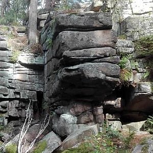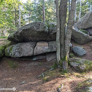 09. Chybotek (obowiązkowy) - kilkumetrowej wysokości grupa skalna złożona z kilku granitowych bloków. Najwyżej położony kamień o średnicy ok. 4 m wsparty w 2 miejscach daje się łatwo rozkołysać, stąd też nazwa. Ze względu na swój kształt zwany był także „Misą cukru”.
