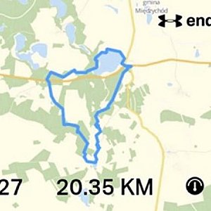 „Natrafiamy” teraz na dobrze utwardzoną drogą, a zatem i tempo mamy niezłe. Musimy przyznać, iż mimo „zrobionych” kilometrów jest spoko. Pogoda dopisuje, humory też. I tak, zupełnie jakby niespodziewanie, po kolejnych kilku minutach las kończy się ukazując pierwsze zabudowania Gorzynia. Przecinamy po raz drugi dzisiejszego dnia naszą drogę wojewódzką nr 160 i… postanawiamy zboczyć ze szlaku na kilkadziesiąt metrów przed zakończeniem pętli. Powód? Stacja benzynowa i hot-dogi. A co! Zasłużyliśmy. Oczywiście, po posiłku docieramy do punktu początkowego naszej trasy, zataczając pełne koło. Wyszło nam coś koło 20 km marszu. Ale niewątpliwie było warto i ufam, że Wam trasa ta również przypadnie do gustu.