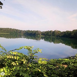 Spod pałacu ruszamy wąską ścieżką rybacką (czasem troszkę podmokłą, co oczywiście pozwala mojej kochanej żonce na „adekwatny” komentarzyk ). Ścieżka ta jednak kończy się w miarę szybko wyprowadzając nas na „solidniejsze” już grunty. Pierwszy etap wyprawy polega praktycznie na obejściu jeziora, którego lustro przebija czasem zza zasłony drzew. Żegnamy się z nim na około 3,5 kilometrze naszej wędrówki. Od tej pory poruszać będziemy się łatwą do przejścia drogą, która doprowadzi nas do wyjątkowo malowniczo usytuowanych stawów hodowlanych i gospodarstwa agroturystycznego Osada Rybacka Sazan (5,5 km). Tuż za budynkami gospodarstwa w teorii rozpoczyna się i kończy „pętla gorzyńska” o czym informuje nas odpowiedni znak „czarnego kółka”. Osobiście uważam, że to całkiem rozsądne miejsce na początek szlaku, może zachęci agroturystów do „ruszenia na szlak”. Byłoby miło.